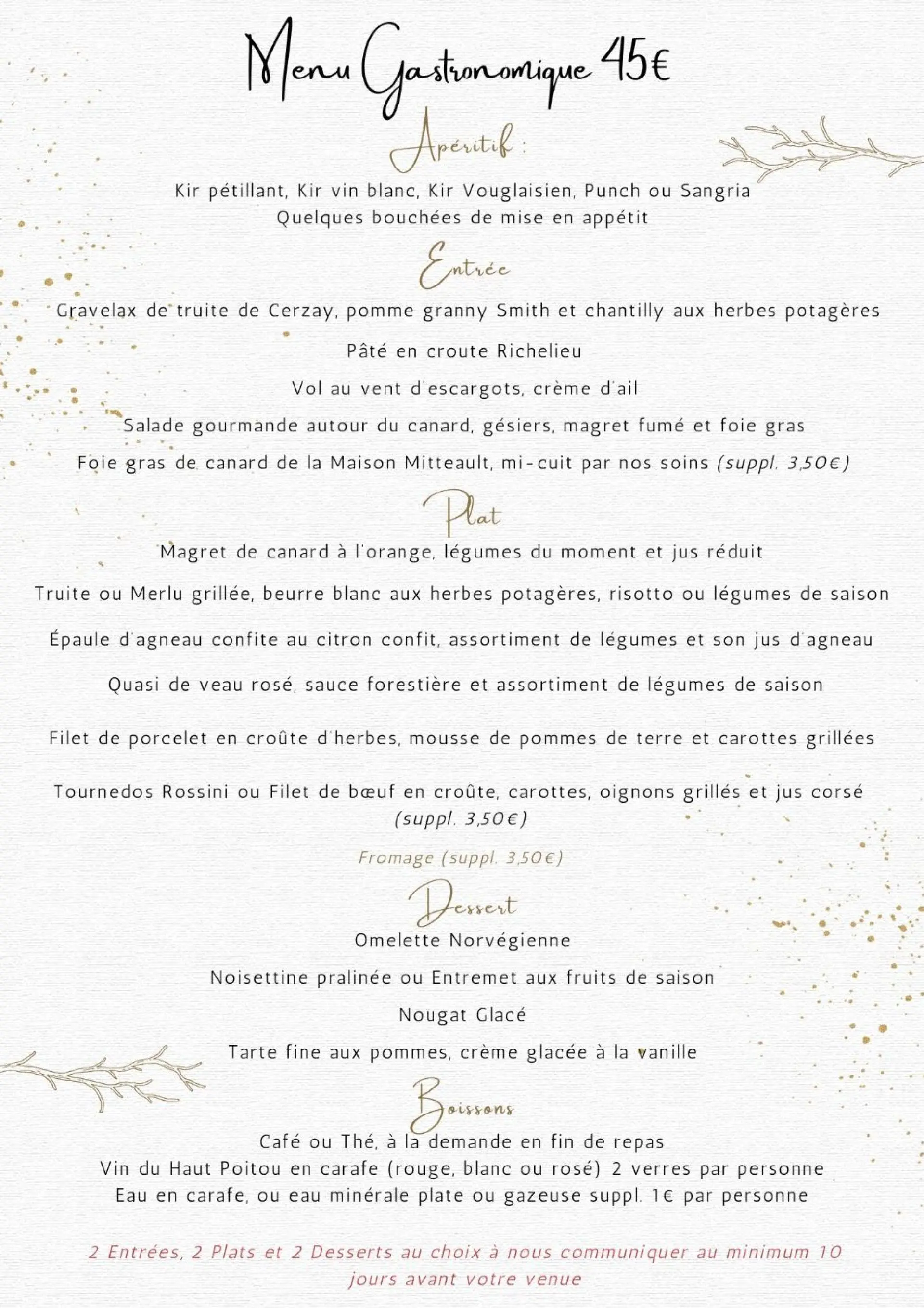 Simon et Ivan, formés dans des restaurants étoilés prennent les rênes du Cheval Blanc après Patrick leur oncle qui avait pris la suite de Simone, sa maman, en 1990. Notre ambition est de ravir les papilles de tous, avec des assiettes gourmandes et raffinées. Une cuisine 100% faite maison mettant à l'honneur les produits locaux du terroir poitevin.